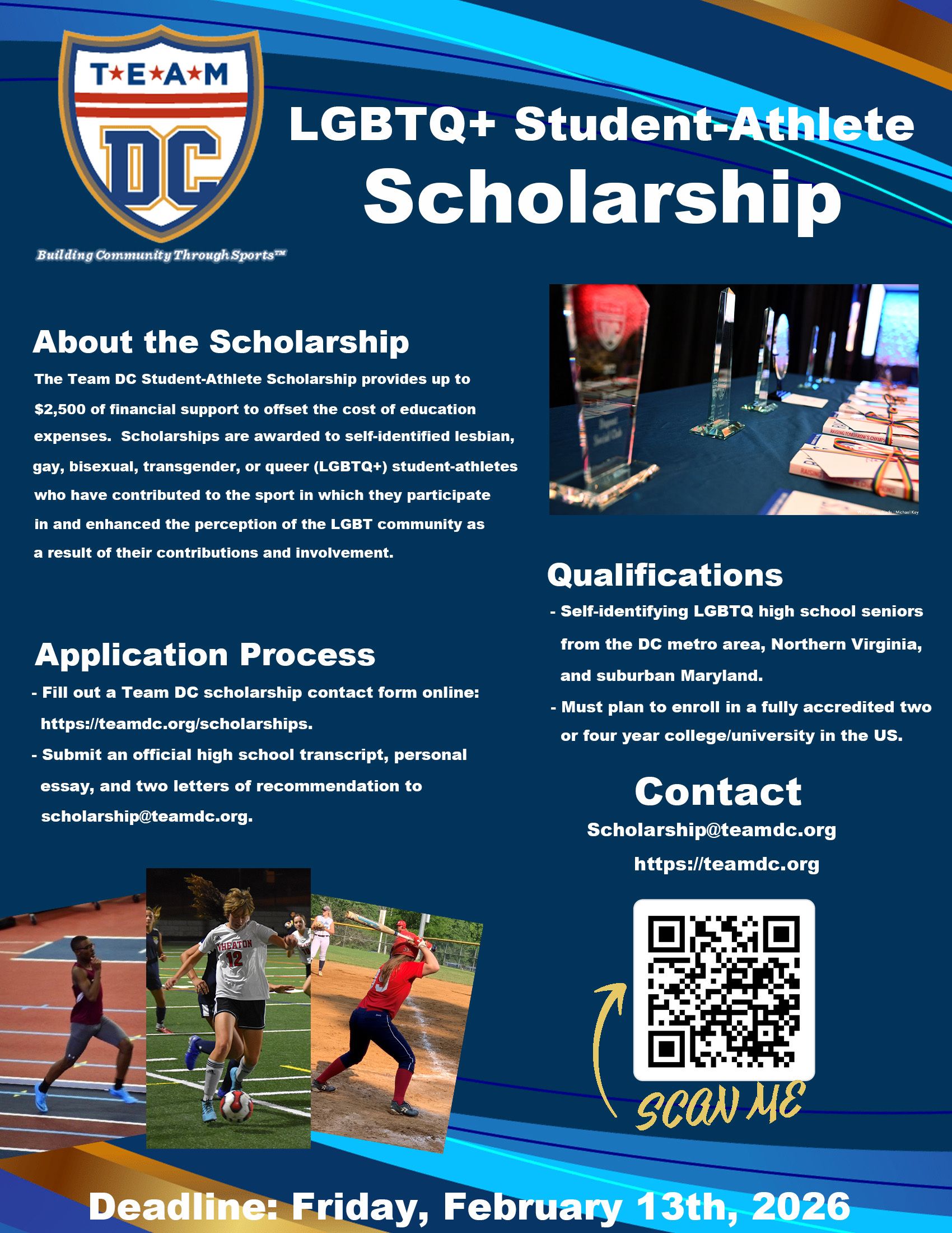 Scholarship applications are being accepted. If you know any teachers, coaches, or others who work with high schools in the DC area, make sure they know about our scholarship program and have them encourage students to apply - [Learn more here]