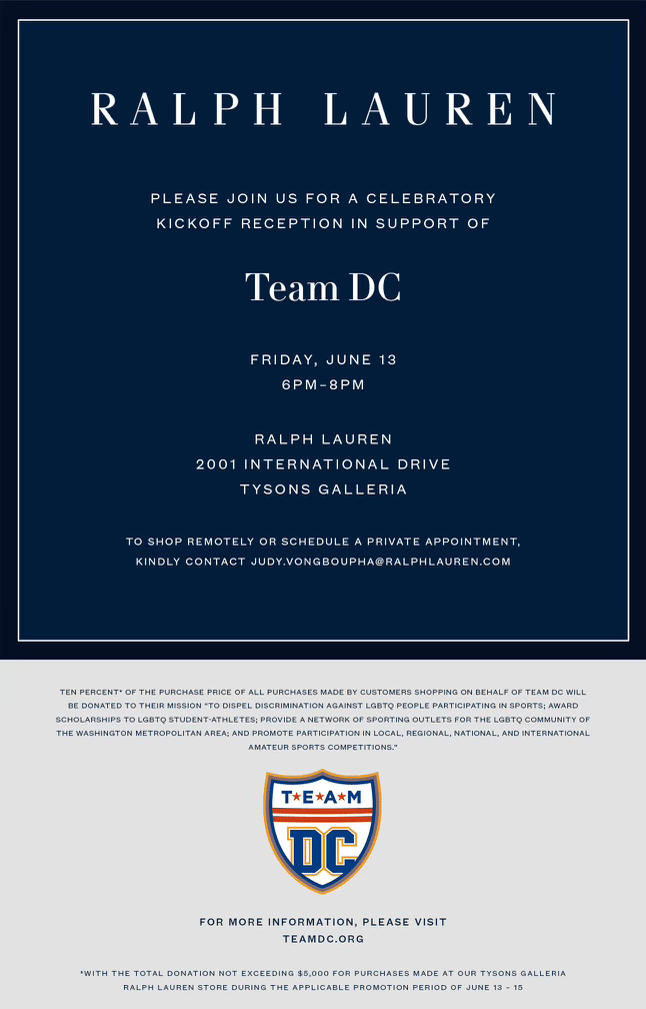 🛍️ Let’s Go Shopping - Ralph Lauren Fundraiser for Team DC