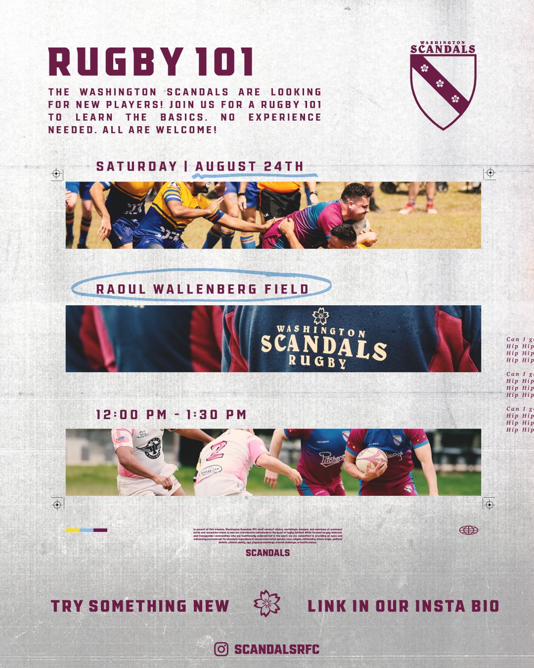 Ready to join? We are gearing up for the ‘24 Fall Season and want you to join the Washington Scandals RFC! Come out and learn the basics of rugby with the team at our Rugby 101. Sign up through the link in our insta bio!